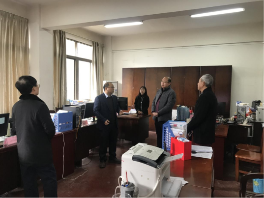 为全面掌握德赢官网新学期开学工作的准备和运行情况,使新学期有一个良好的开端,2月14日上午,学院党委书记陈正、副院长宁裕忠、行政办公室主任周鹭一行,先后到德赢官网行政办公室、学工组、教学办公室、研究生办公室和实验中心等进行了全面的现场检查。