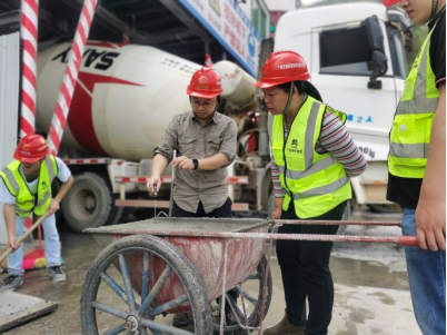 随后,课题组陈正教授一行赶往足尺模型所在的向阳服务区,开展入泵混凝土工作性能调控和浇筑施工过程控制工作,为底板混凝土浇筑全过程提供技术支撑。3月18日晚十点二十五分,天峨龙滩特大桥足尺模型底板混凝土浇筑试验顺利完成。